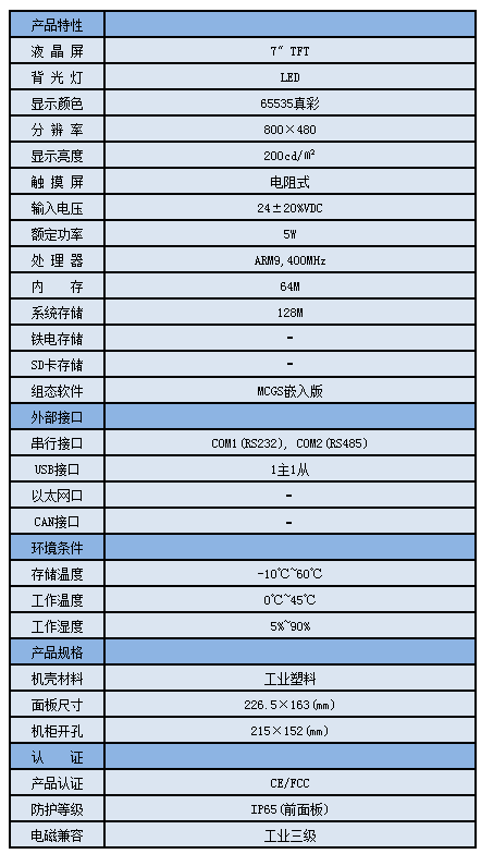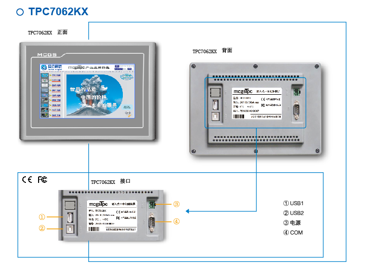 TPC7062KX,是一套以嵌入式低功耗CPU為核心(主頻400MHz)的高性能嵌入式一體化觸摸屏。該產(chǎn)品設(shè)計(jì)采用了7英寸高亮度TFT液晶顯示屏(分辨率800×480),四線電阻式觸摸屏(分辨率4096×4096)。同時(shí)還預(yù)裝了MCGS嵌入式組態(tài)軟件(運(yùn)行版),具備強(qiáng)大的圖像顯示和數(shù)據(jù)處理功能。